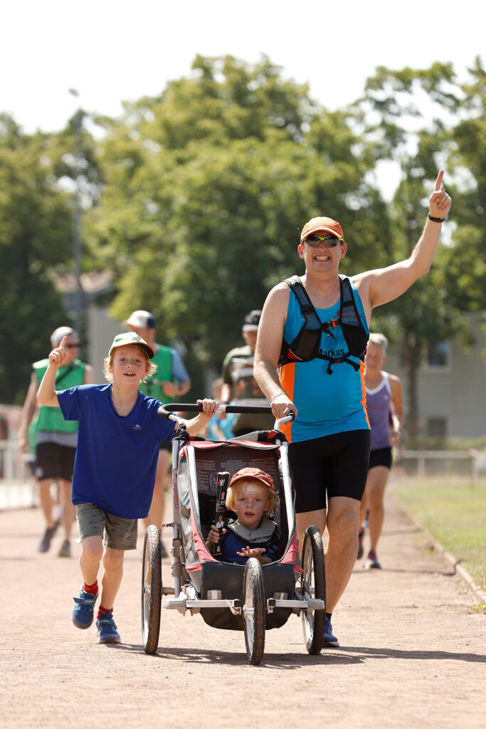 Unser Muko-Spendenlauf ist kein Wettkampf, sondern ein fröhliches und freundliches Miteinander. Läufer, Walker und Rollifahrer, jung und alt, Hobbysportler und Marathonläuferin sind dabei am Start. Wir sind eine inklusive Veranstaltung und offen für jeden und alle. Niemand kommt als letzte Person ins Ziel, weil alle im eigenen Tempo eine Runde nach der anderen drehen.