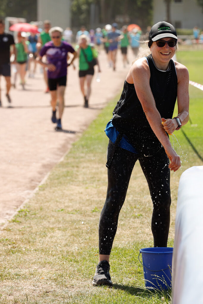 Trotz Verletzung war Tina beim Lauf mit dabei und hat sagenhafte 100 Runden gedreht. Bei der Hitze auf dem Sportplatz zählt das quasi doppelt.