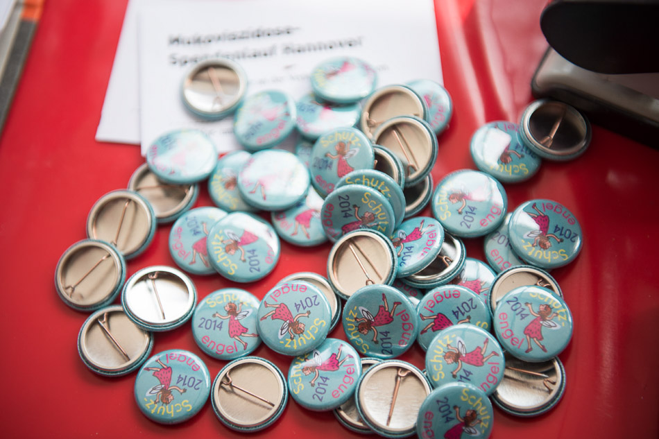 Bei der Anmeldung bekam jede/jeder unseren Schutzengel-Button, der in diesem Jahr von der hannoverschen Illustratorin Katja Schmiedeskamp gestaltet wurde. Der Schutzengel-Button steht für das Haus Schutzengel, denn auch in diesem Jahr gingen alle Spenden, die bei der Veranstaltung erlaufen wurden, komplett an die Eltern- und Patientenherberge in der Nähe der MHH.