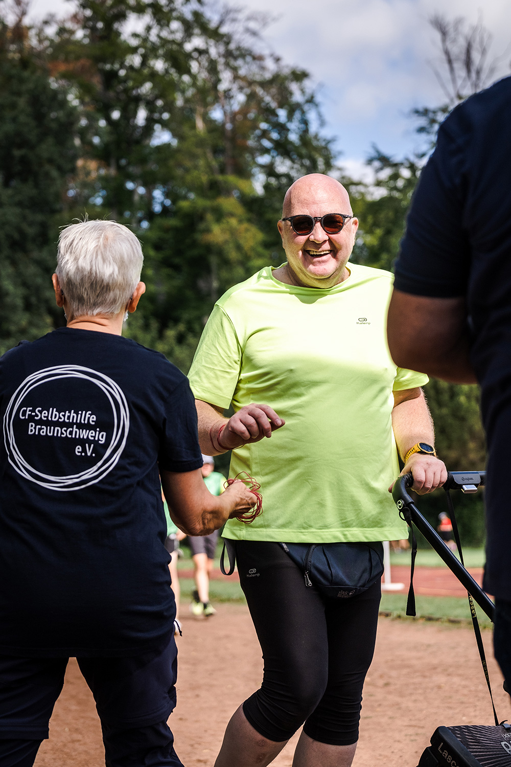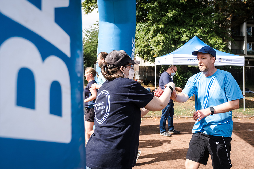 Um 11 Uhr durfte ich alle auf dem Sportplatz Hasenheide des TKH begrüßen und dabei auch einen besonderen Dank an Helga Nolte vom Haus Schutzengel aussprechen. Zusammen mit ihr haben wir von der CF-Selbsthilfe Braunscheig e.V. (CF = Cystische Fibrose = Mukoviszidose) in den letzten Montaten einige geflüchtete ukrainische Muko-Familien betreut.