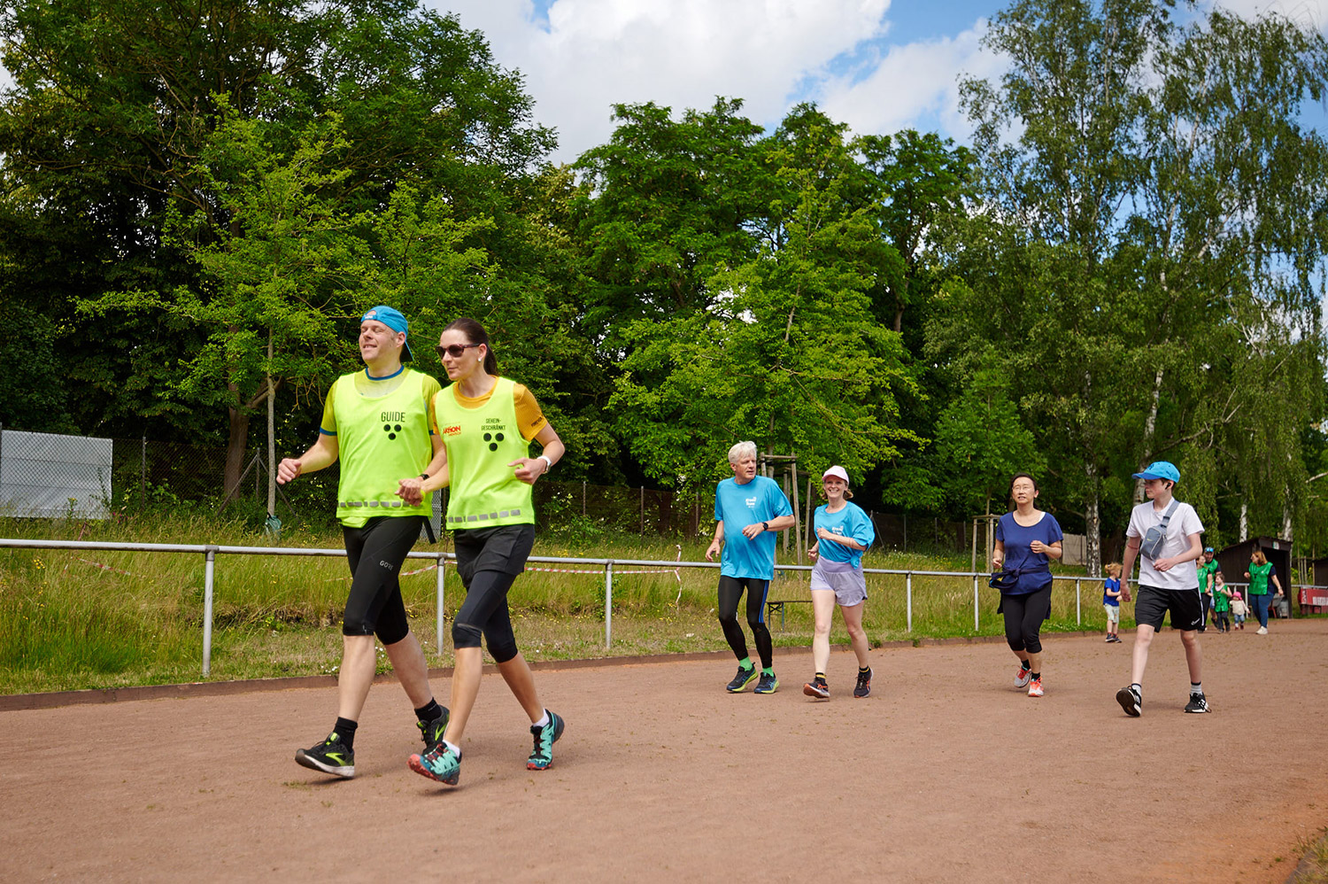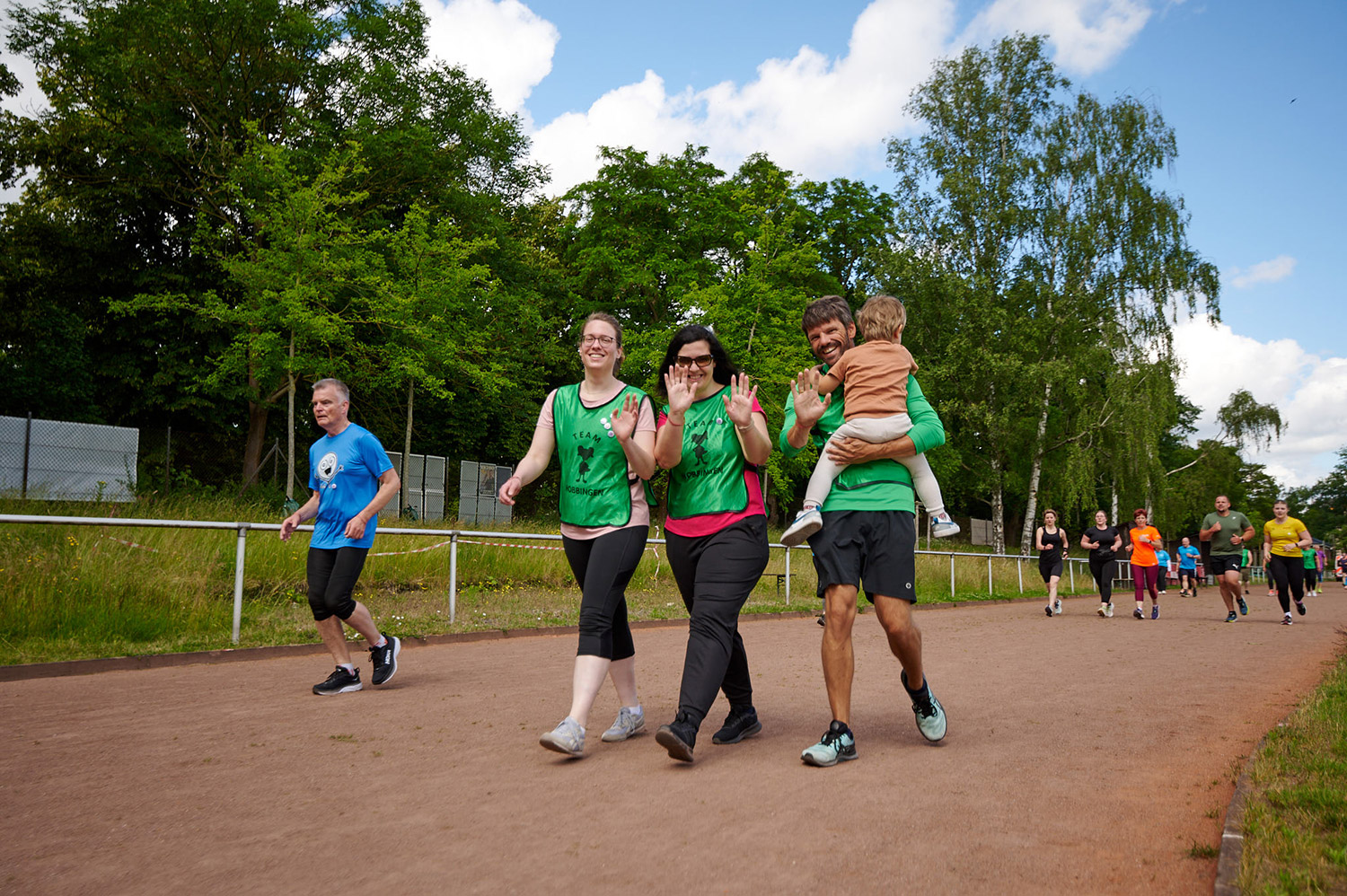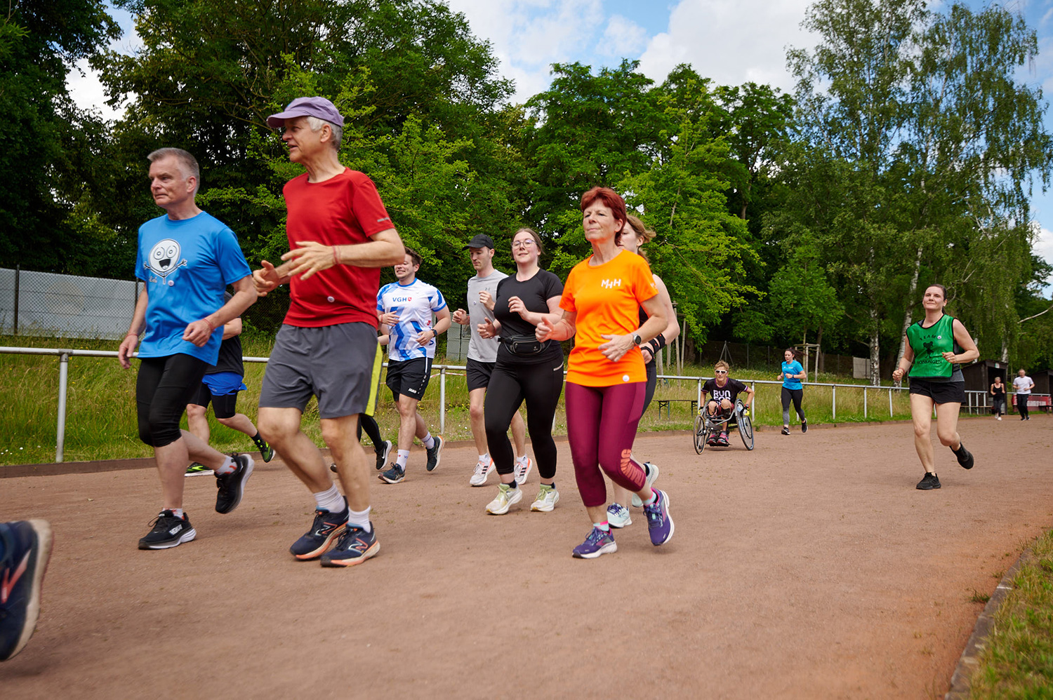 Bei unserem inklusiven Benefizlauf waren Rollifahrerinnen und ein Tandem (Läuferin mit Sehbehinderung und ihr Guide), Marathonläufer*innen und Spaziergänger sowie Kinderwagen und Rollatoren mit dabei.