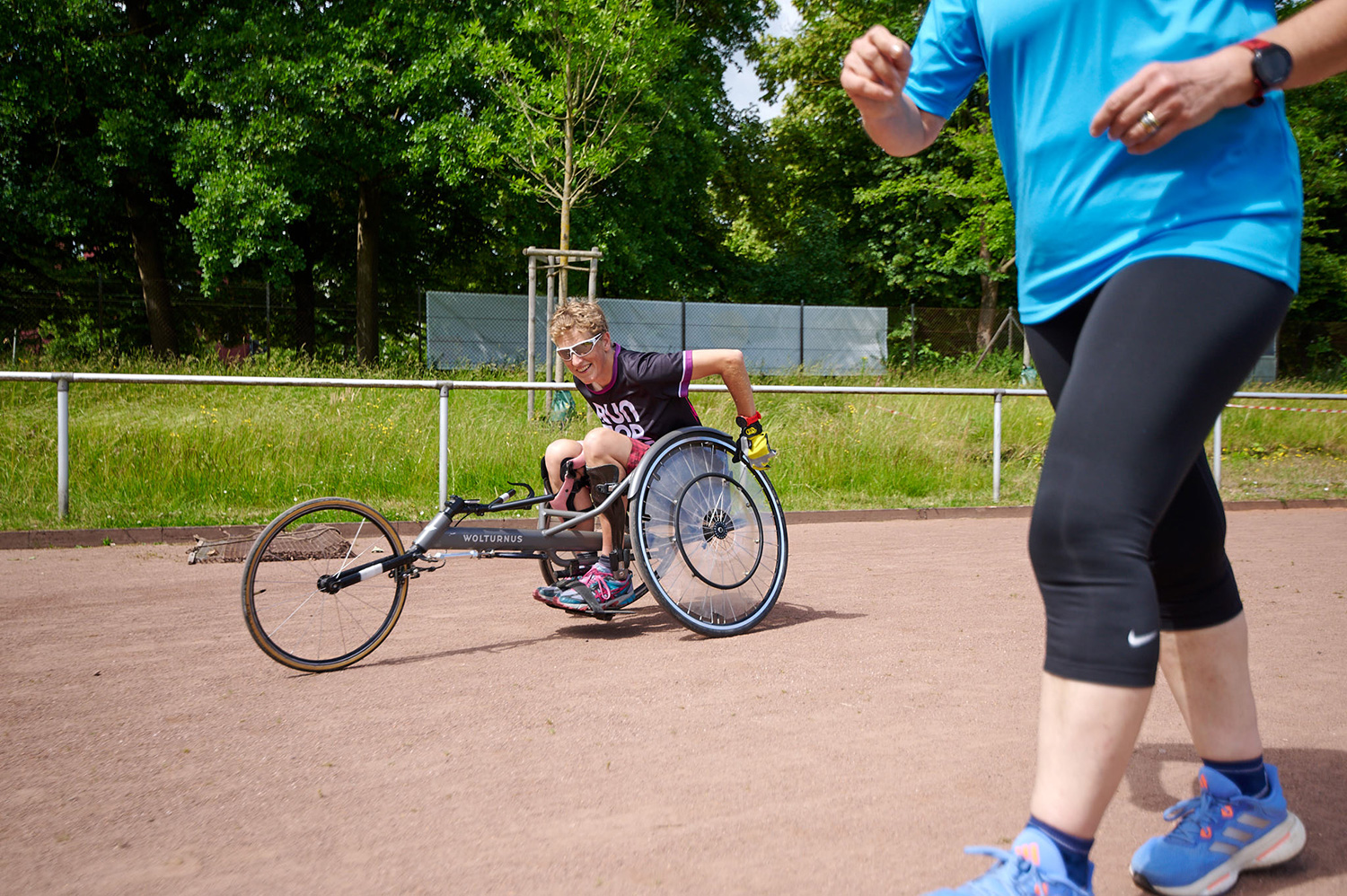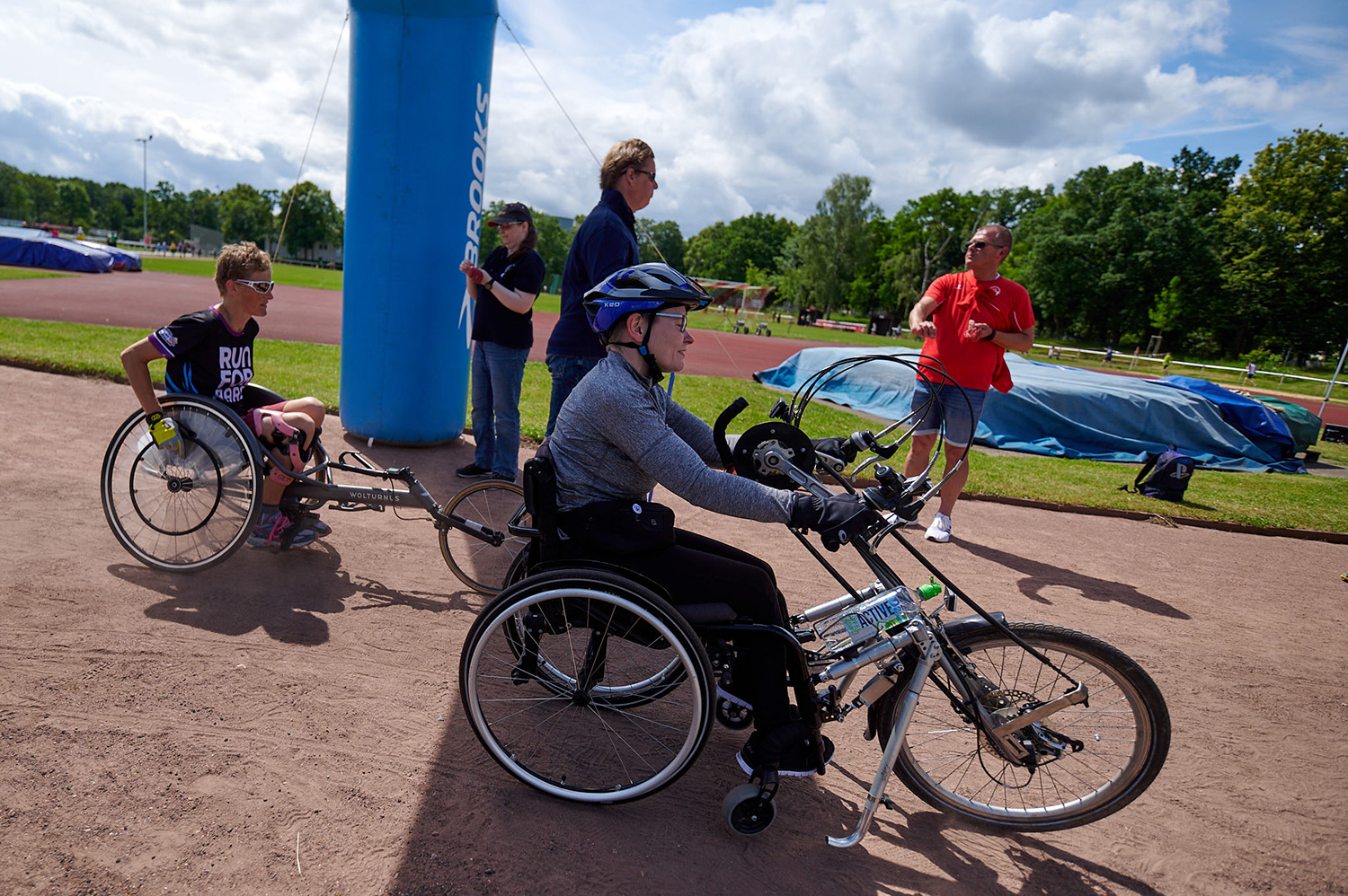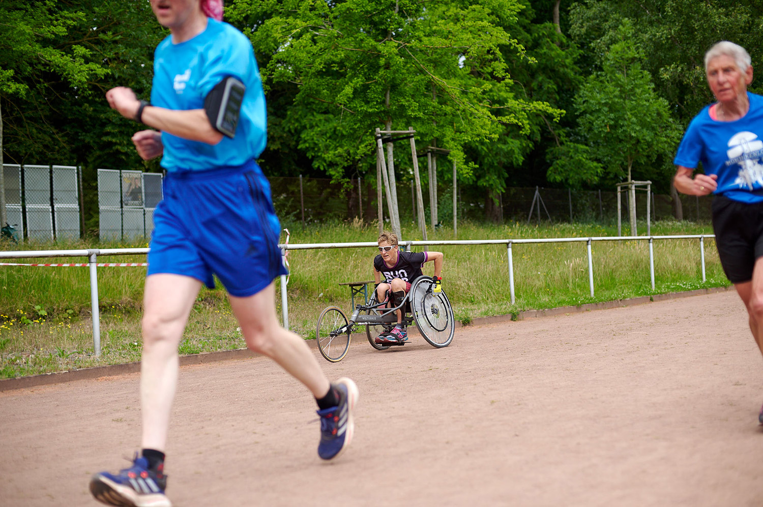 Bei unserem inklusiven Benefizlauf waren Rollifahrerinnen und ein Tandem (Läuferin mit Sehbehinderung und ihr Guide), Marathonläufer*innen und Spaziergänger sowie Kinderwagen und Rollatoren mit dabei.