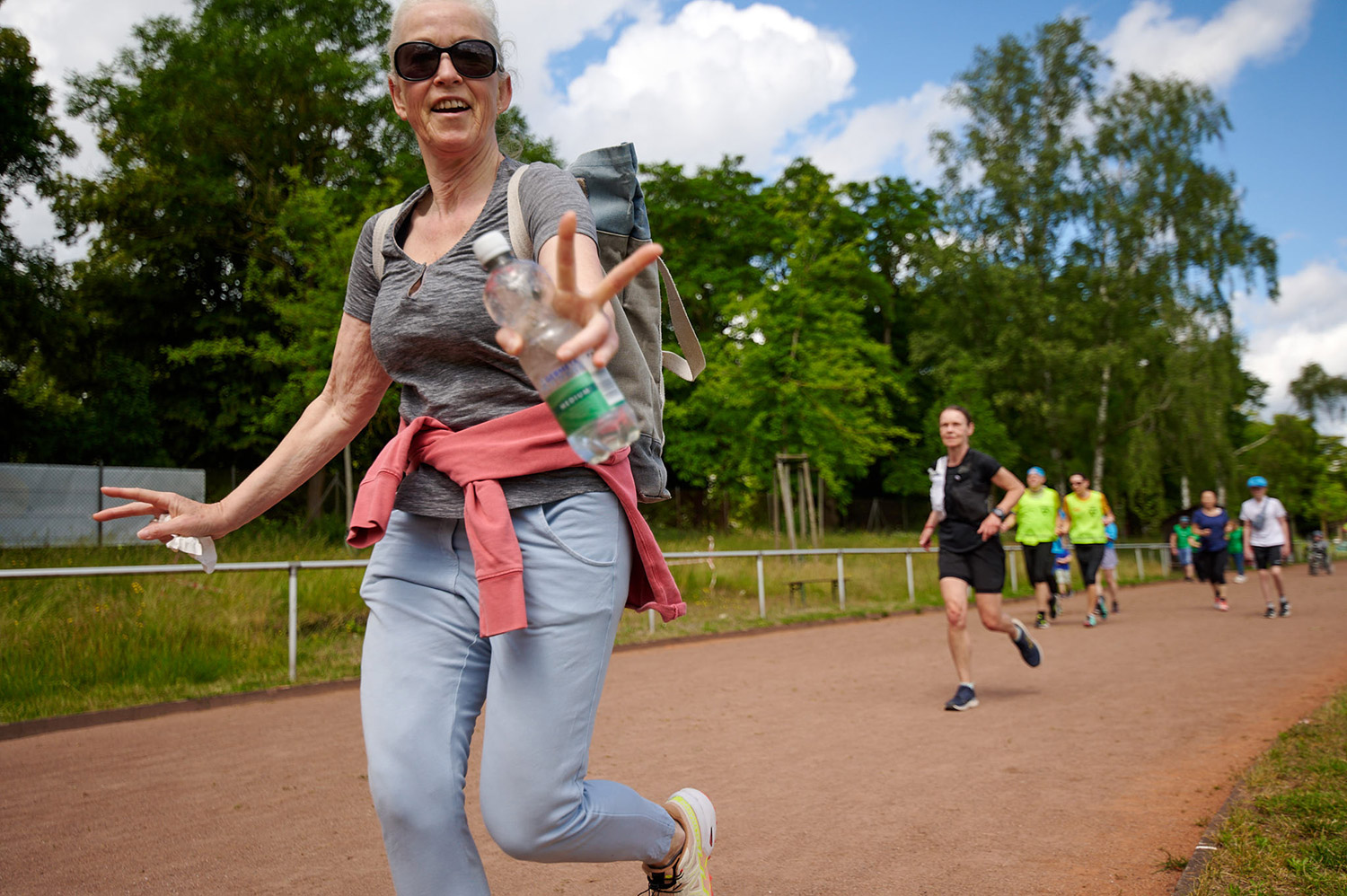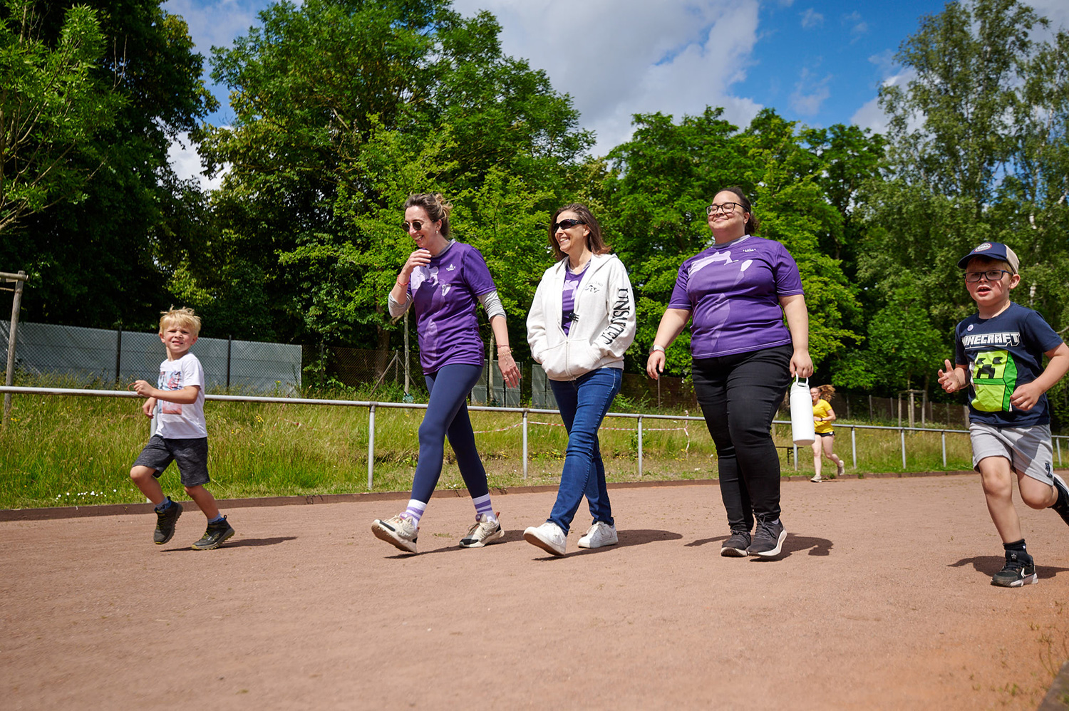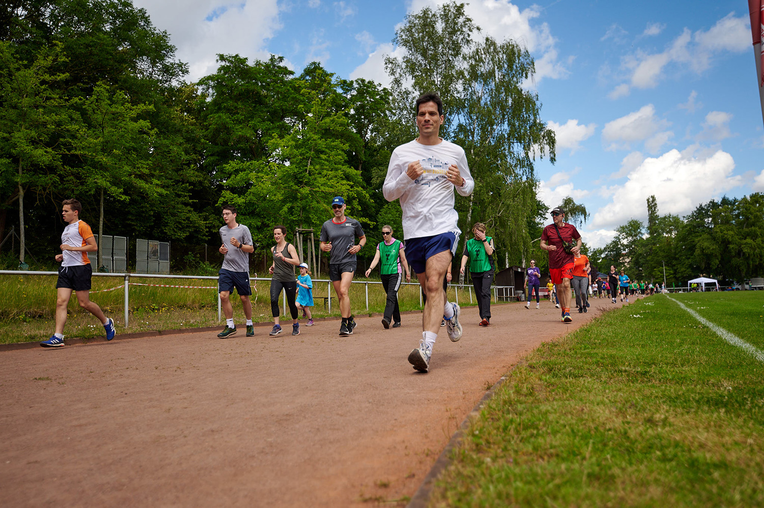 Nach der Begrüßung um 11 Uhr fiel der Startschuß und alle Teilnehmenden konnten schnell oder langsam laufen oder gehen, viele oder nur ein paar Runden drehen.