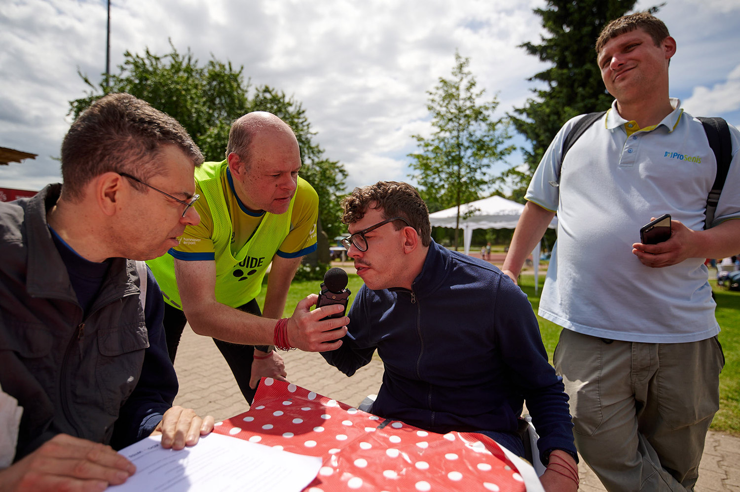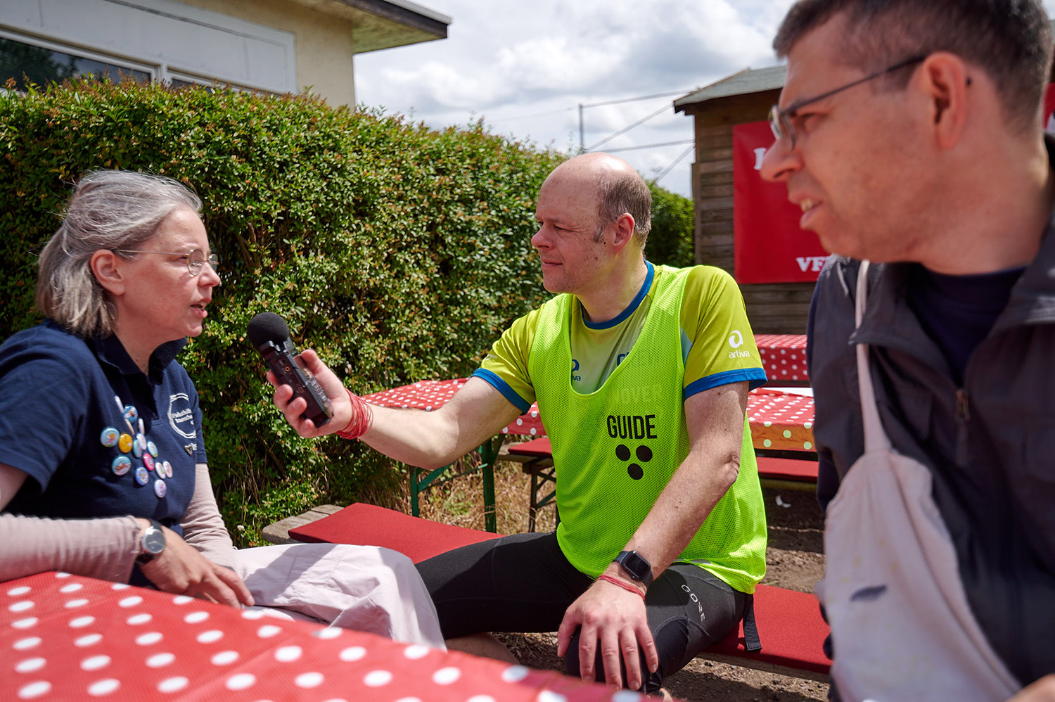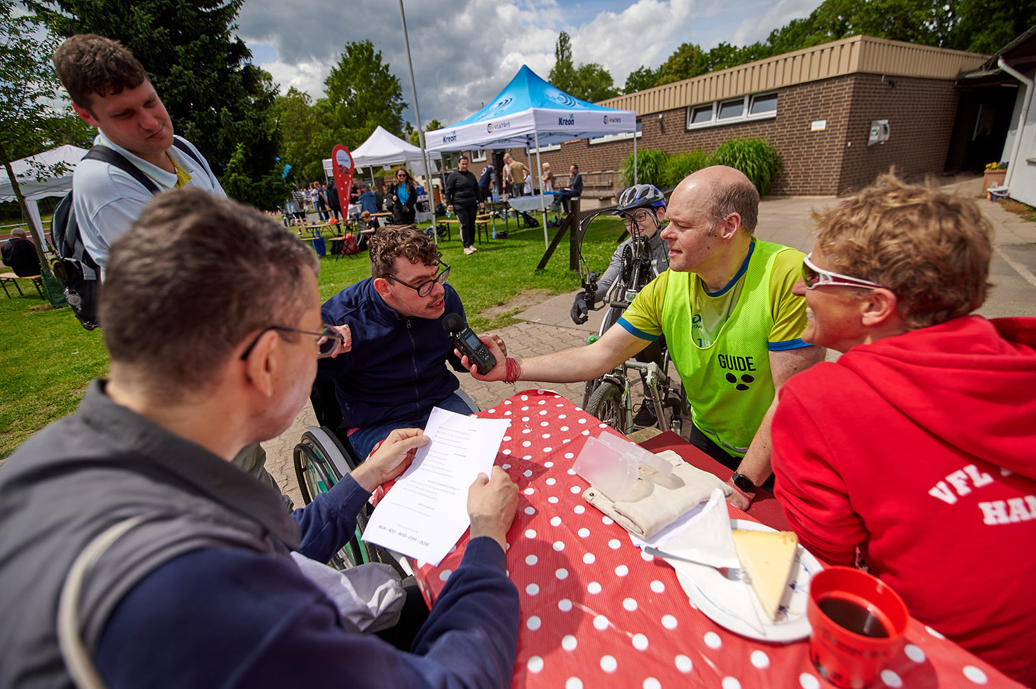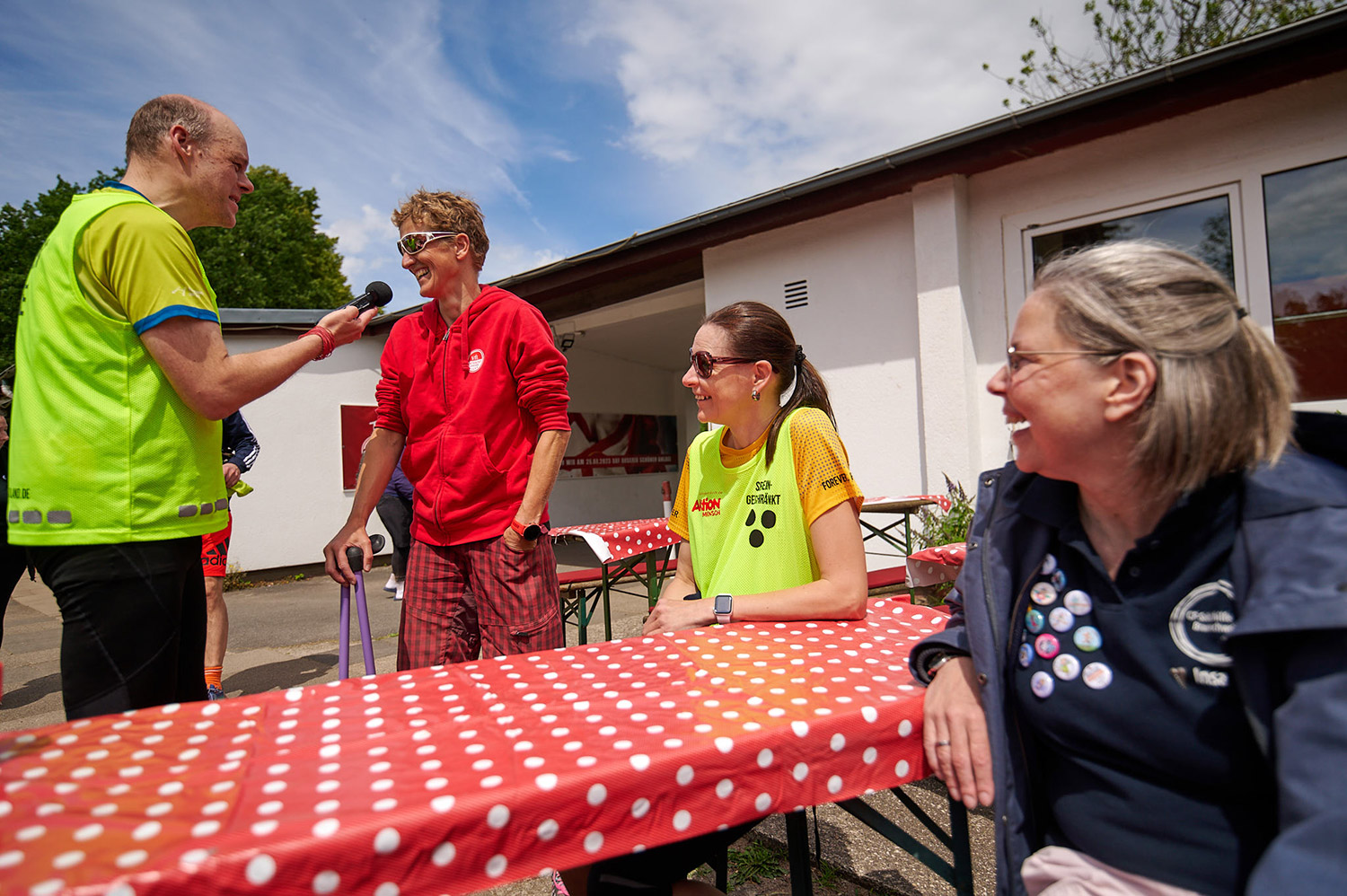 Während andere fleißig auf der Laufstrecke unterwegs waren, gab es abseits ein Interview mit den Hannoverschen Werkstätten. Unsere Schirmherrin Tina Deeken, eine Para-Teilnehmerin und ich wurden für die Radiosendung „Handicap on Air“ interviewt.