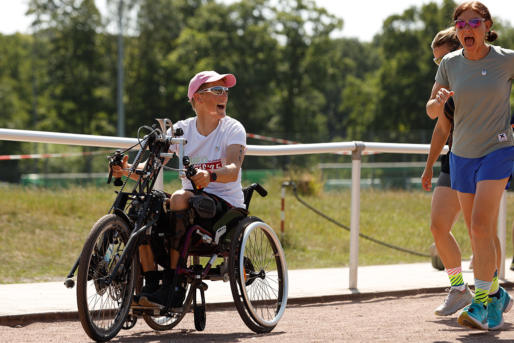 Unser Muko-Spendenlauf ist kein Wettkampf, sondern ein fröhliches und freundliches Miteinander. Läufer, Walker und Rollifahrer, jung und alt, Hobbysportler und Marathonläuferin sind dabei am Start. Wir sind eine inklusive Veranstaltung und offen für jeden und alle. Niemand kommt als letzte Person ins Ziel, weil alle im eigenen Tempo eine Runde nach der anderen drehen.