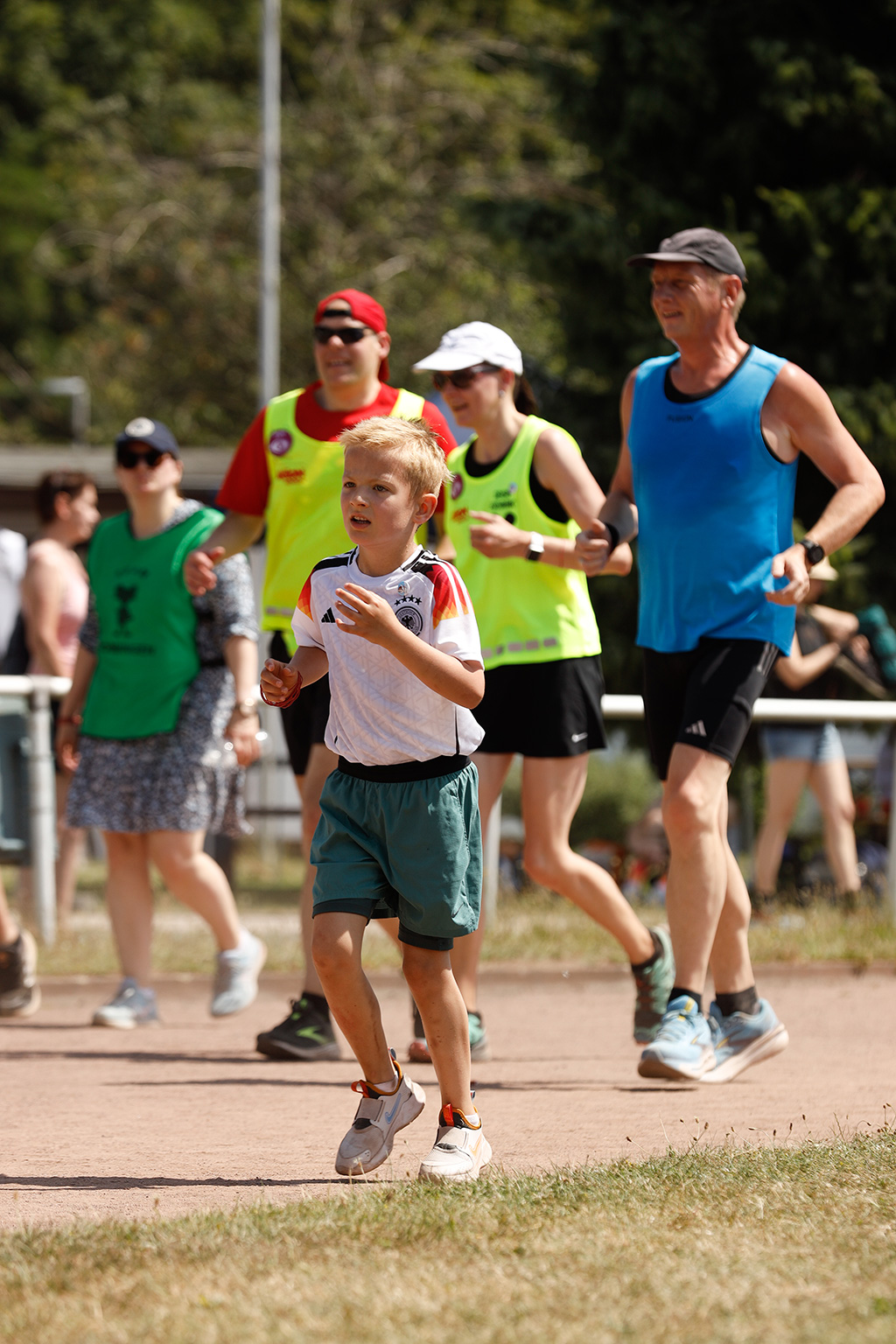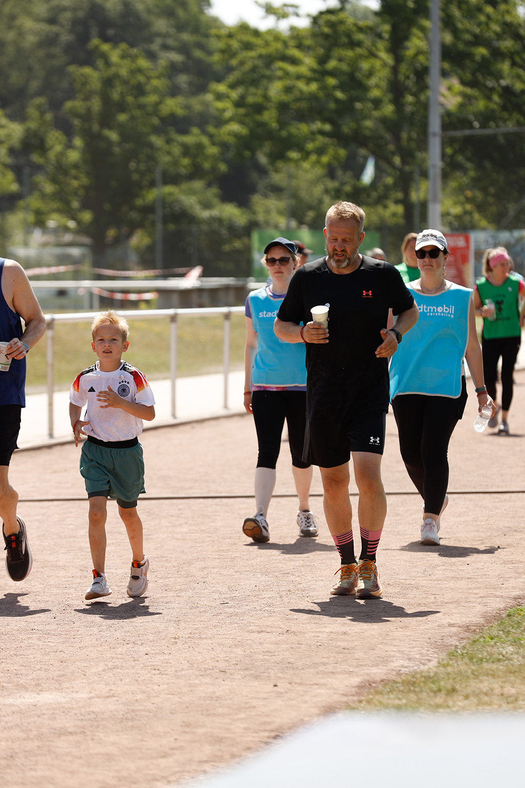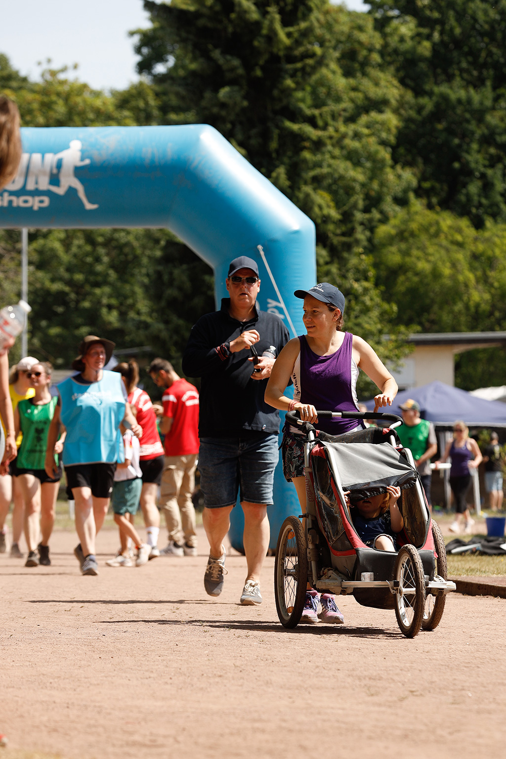 Viele Läufer kommen mit der ganzen Familie und picknicken neben der Laufbahn. Da Pausen ausdrücklich erlaubt sind, machen etliche zwischendurch eine Verschnaufpause, stärken sich und starten dann zu neuen Runden.