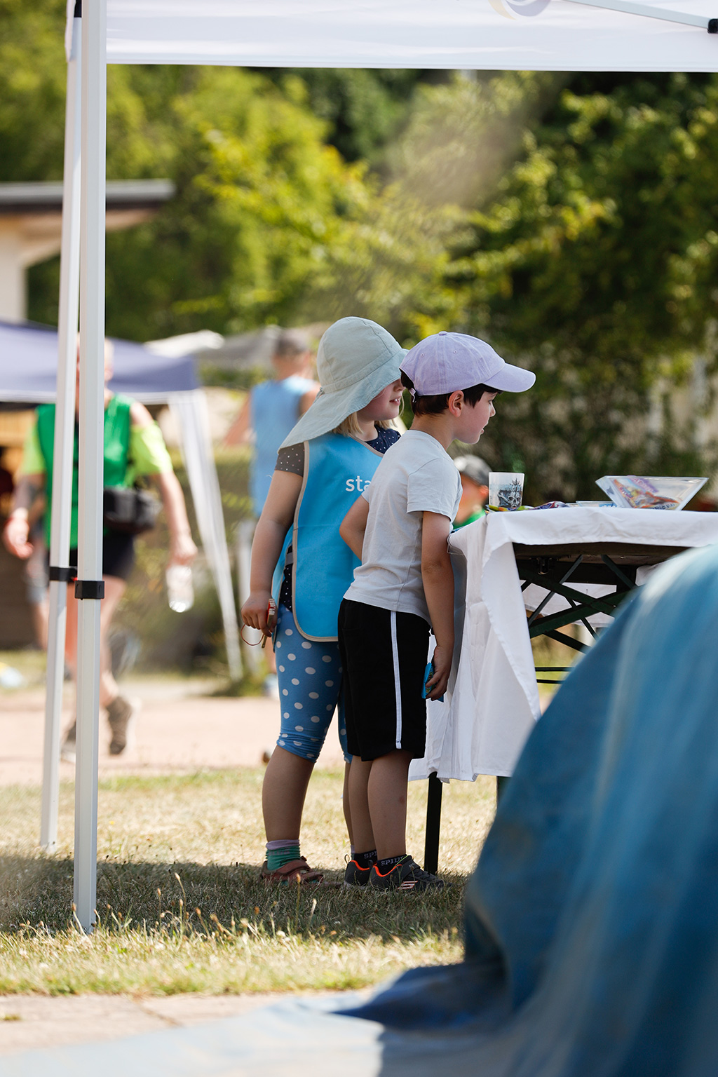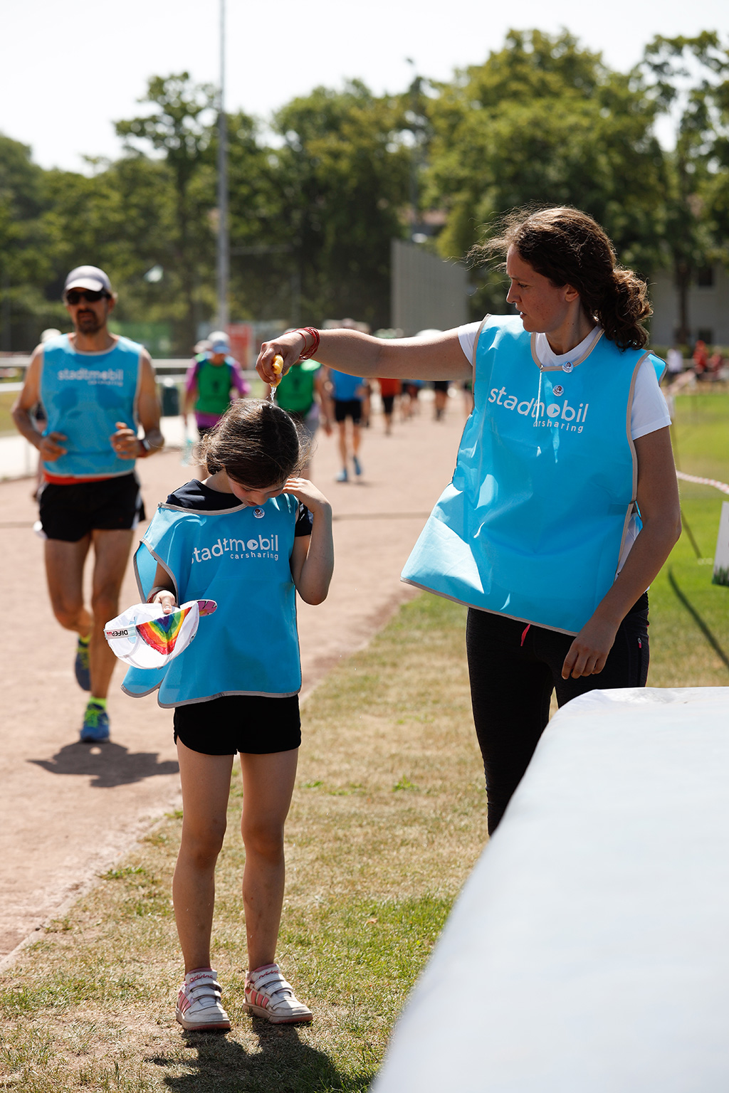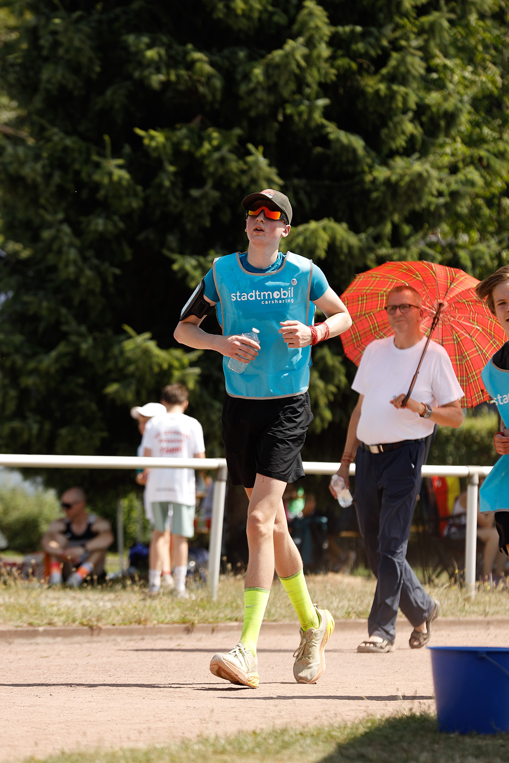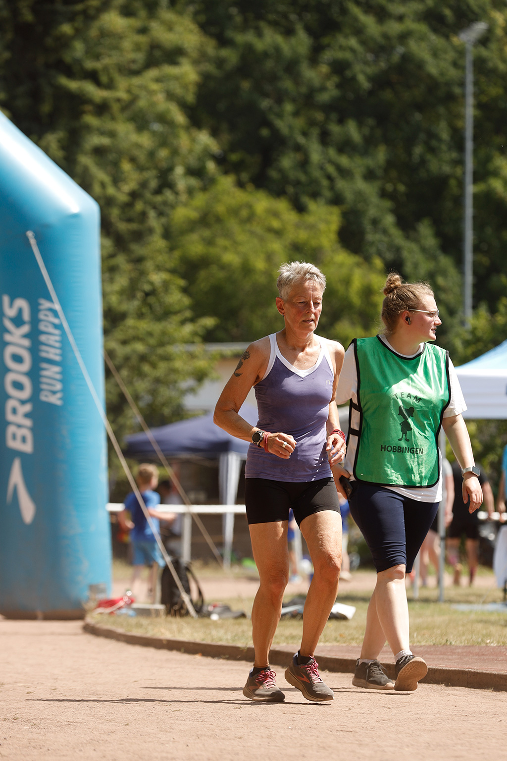 Viele Läufer kommen mit der ganzen Familie und picknicken neben der Laufbahn. Da Pausen ausdrücklich erlaubt sind, machen etliche zwischendurch eine Verschnaufpause, stärken sich und starten dann zu neuen Runden.